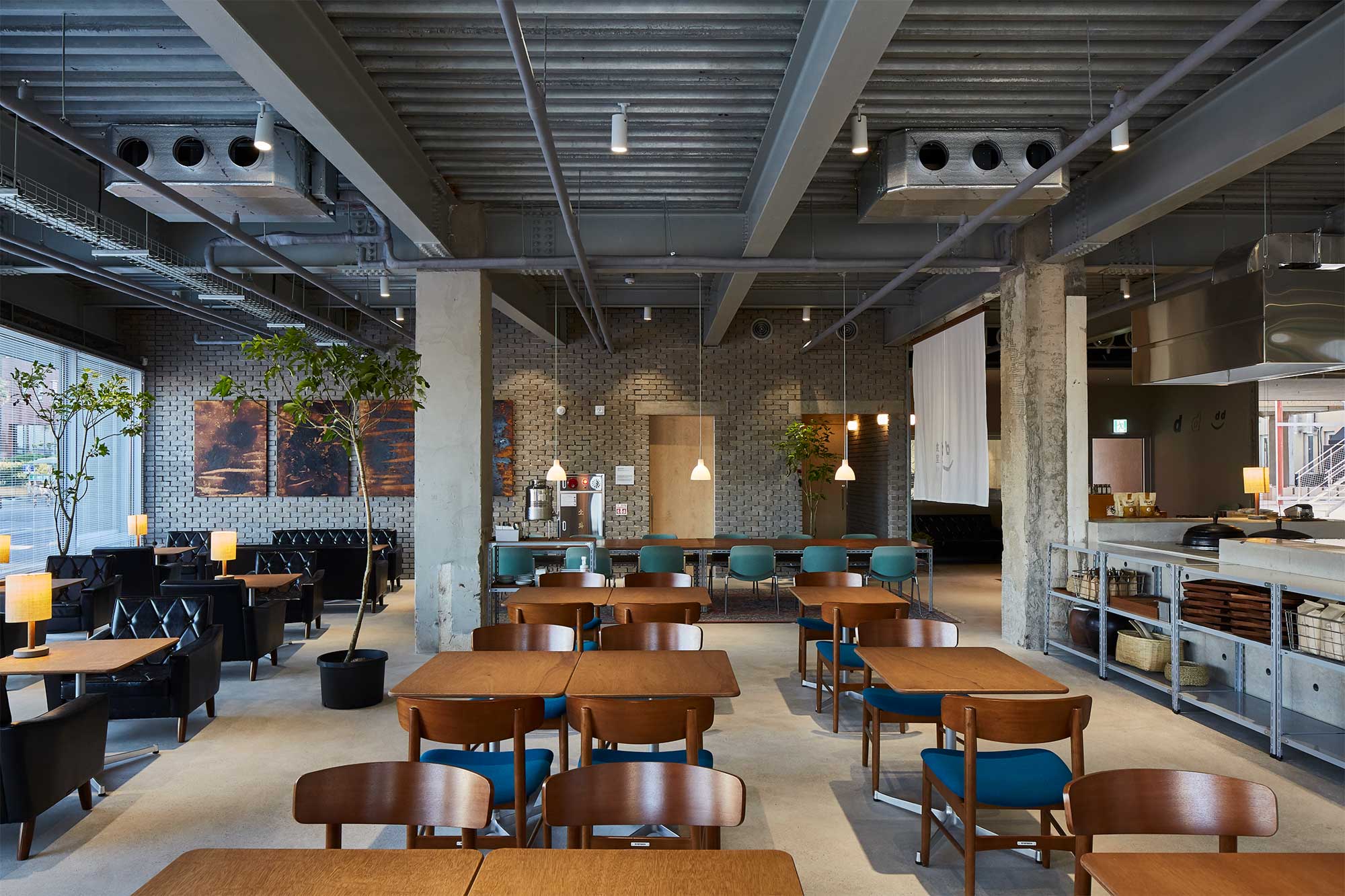 The complex includes a restaurant, store, gallery, and the D Room accommodation facility. In addition, D News provides a kitchen, gallery, and sleeping area designed for artisans, artists, and designers who stay on site to host workshops and collaborative programs. The space operates as a cultural hub rather than a single-purpose building.