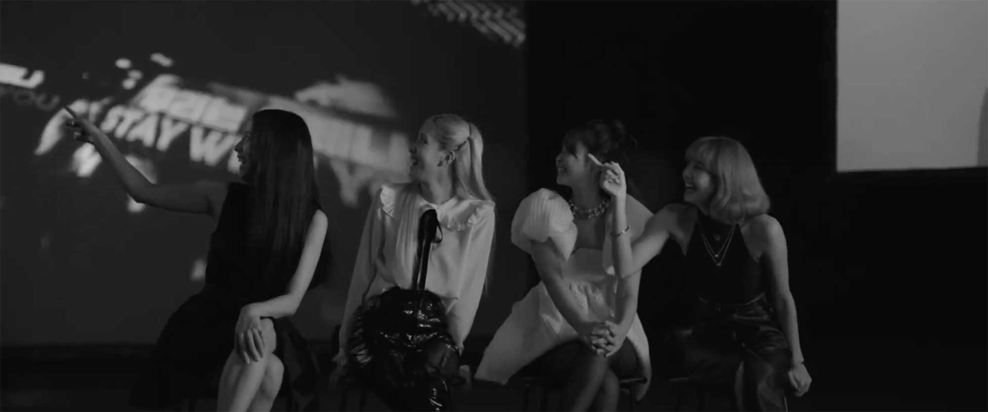 Blackpink seated in memory lane interview setup.