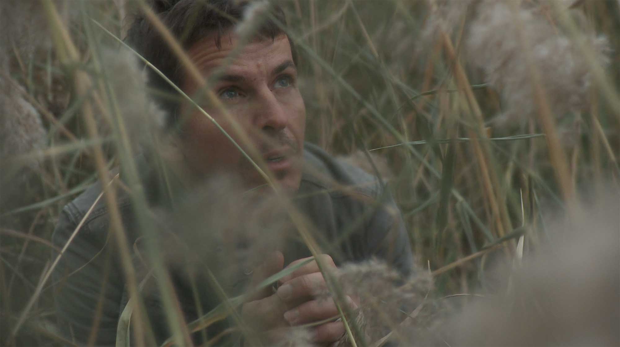 Lukas (Crisjan Zöllner) crouches in a field of reeds, searching for hope