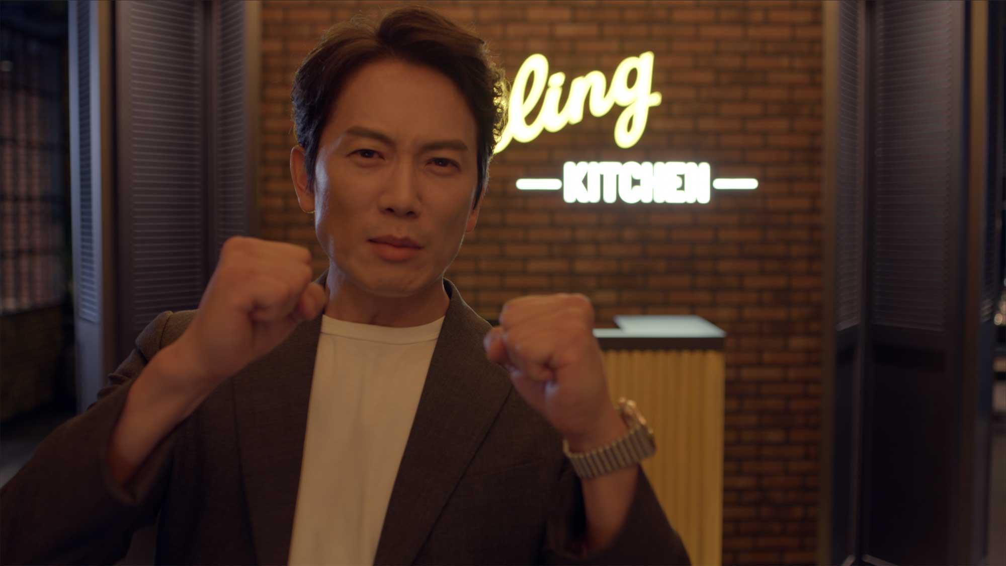 Ji Sung with playful fists-up pose during Breitling promo.