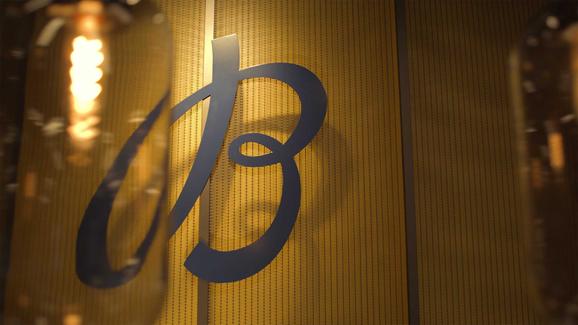 Close-up of stylized B logo at Breitling Townhouse Hannam.