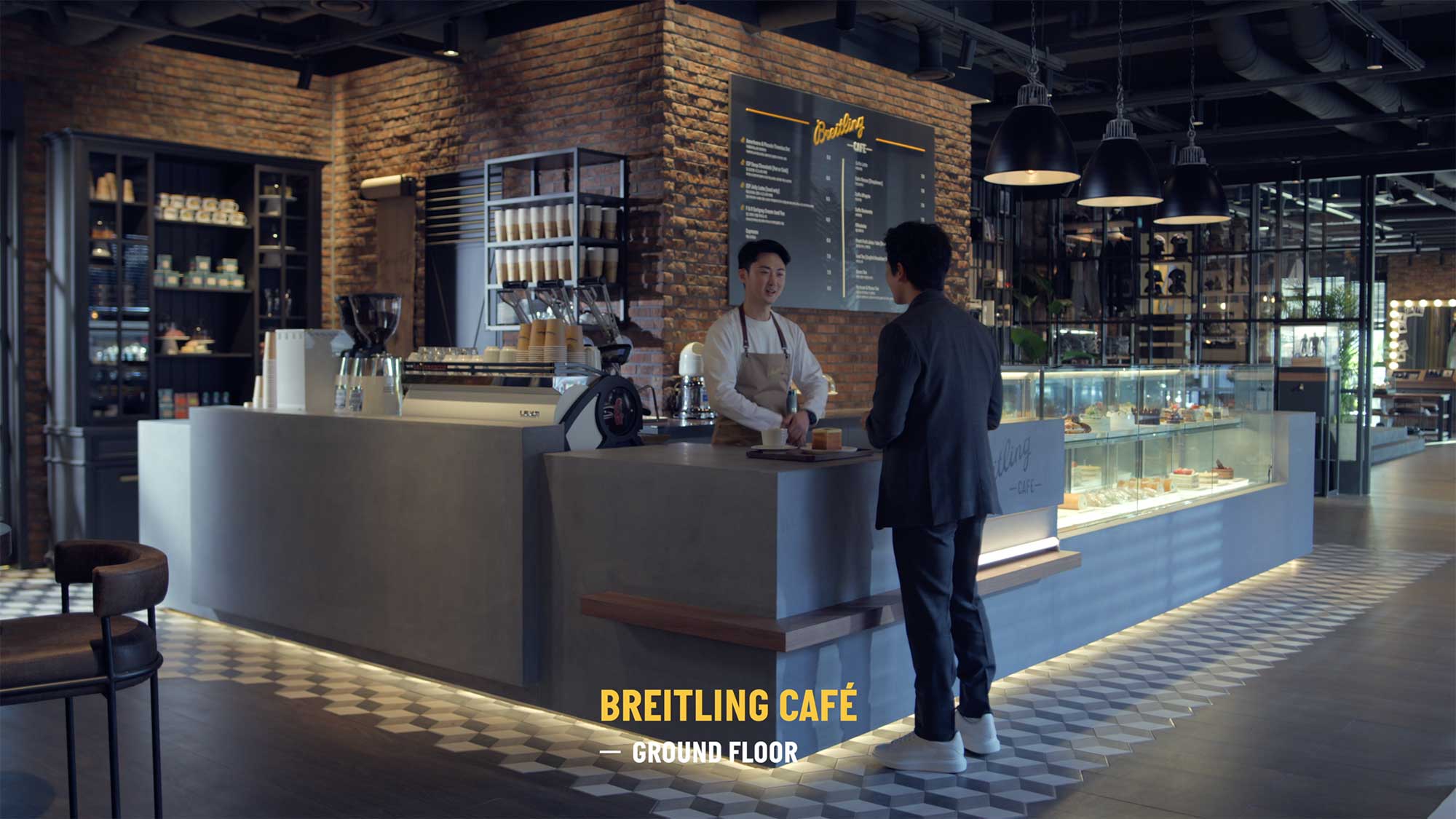 Ji Sung ordering coffee at Breitling Café in Seoul.
