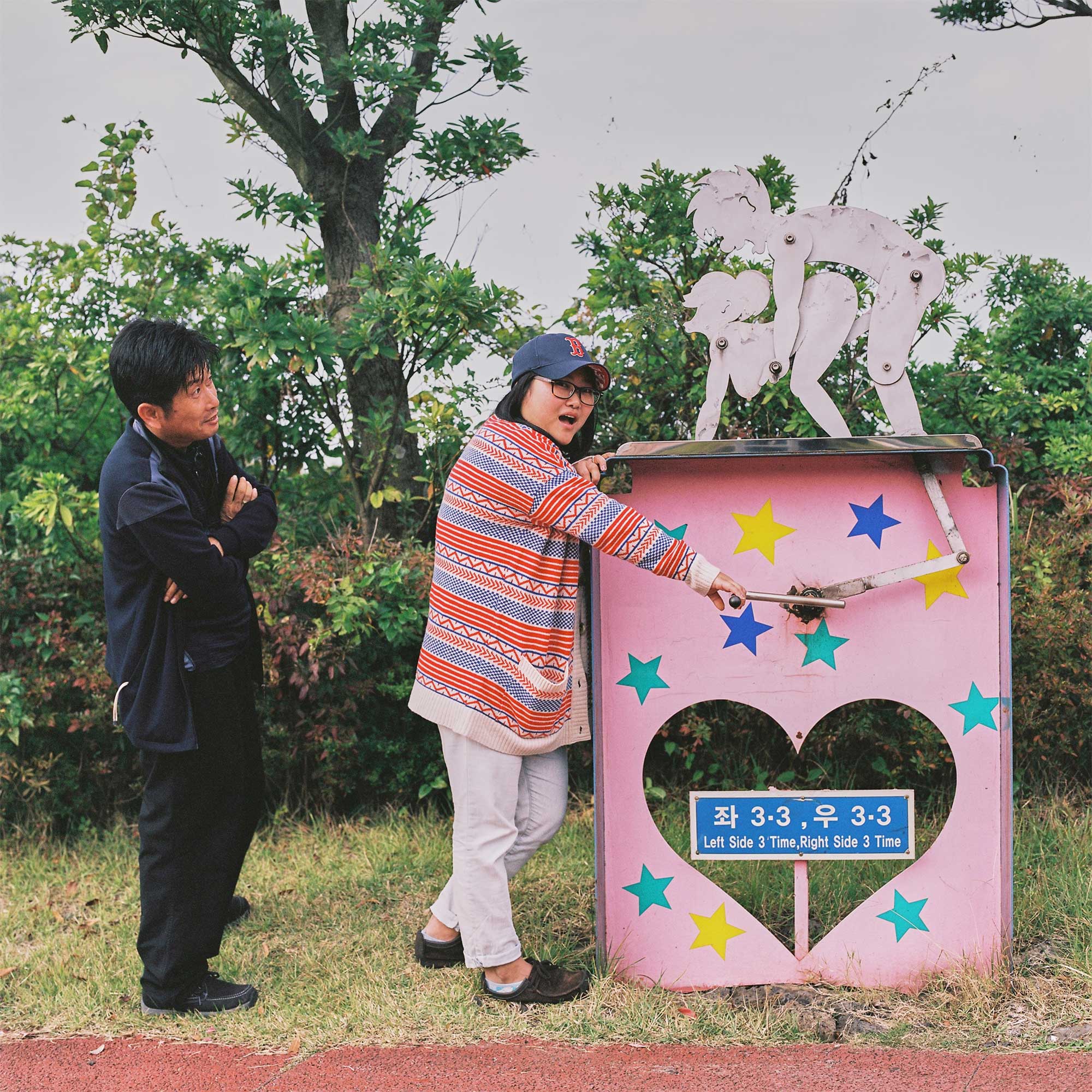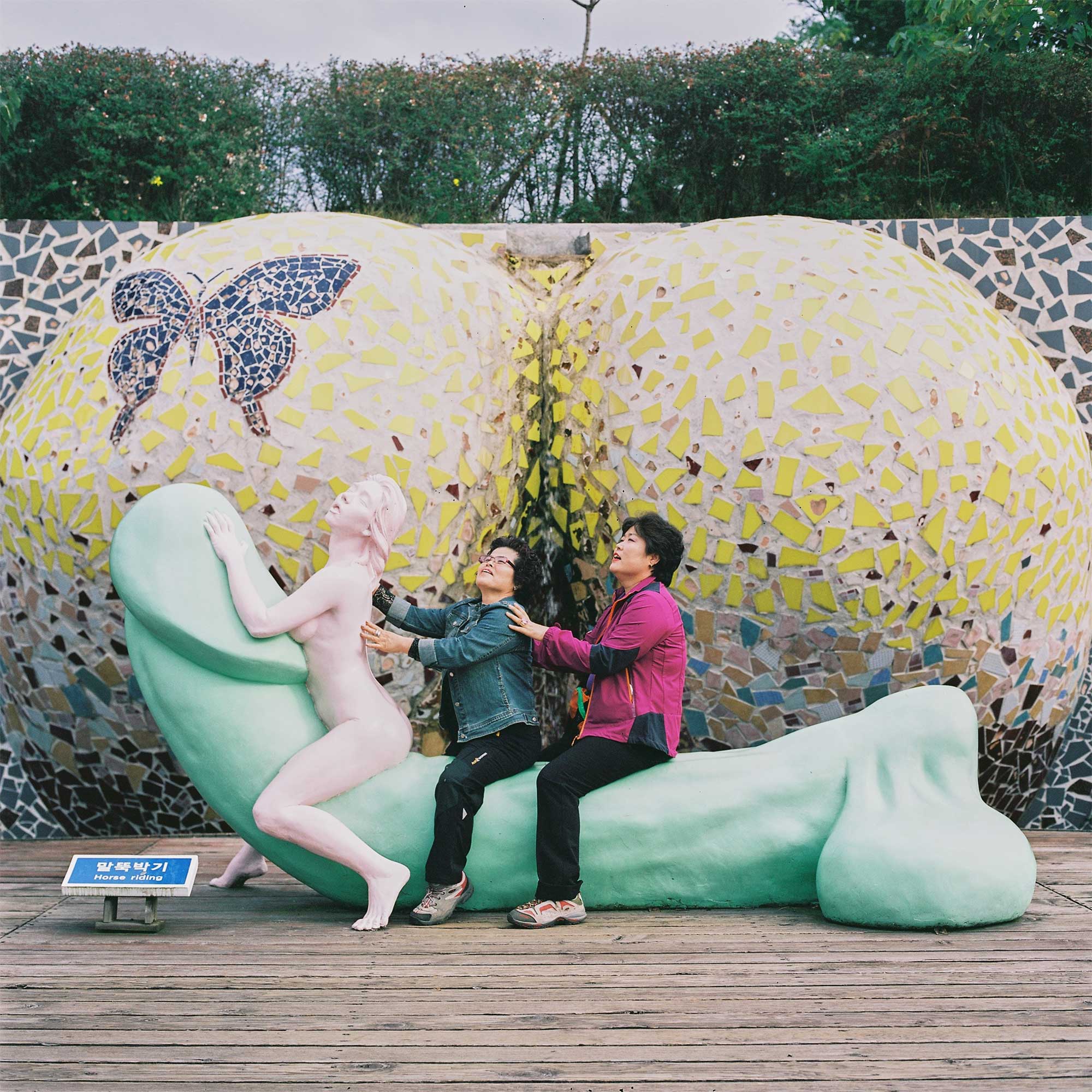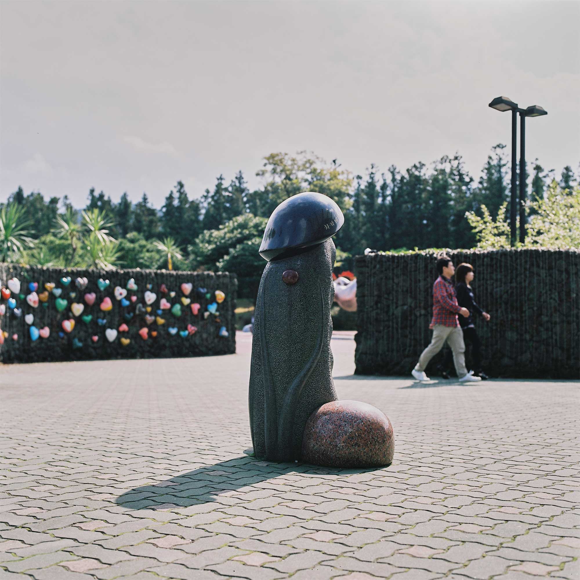 JEJU LOVELAND (제주러브랜드) IS AN OUTDOOR SCULPTURE PARK WHICH OPENED IN 2004 ON JEJU ISLAND IN SOUTH KOREA. WIKIPEDIA MENTIONS THAT THIS PARK IS FOCUSED ON A THEME OF SEX, RUNNING SEX EDUCATION FILMS, AND FEATURING 140 SCULPTURES REPRESENTING HUMANS IN VARIOUS SEXUAL POSITIONS. IT ALSO HAS OTHER ELEMENTS SUCH AS LARGE PHALLUS STATUES, STONE LABIA, AND HANDS-ON EXHIBITS SUCH AS A “MASTURBATION-CYCLE”. THE PARK’S WEBSITE DESCRIBES THE LOCATION AS “A PLACE WHERE LOVE ORIENTED ART AND EROTICISM MEET”. THIS IS A SHORT SERIES THAT I SHOT AS A PHOTOGRAPHER PEAKING THROUGH THE DOORS OF THIS ODD THEME PARK ON JEJU ISLAND IN SOUTH KOREA.