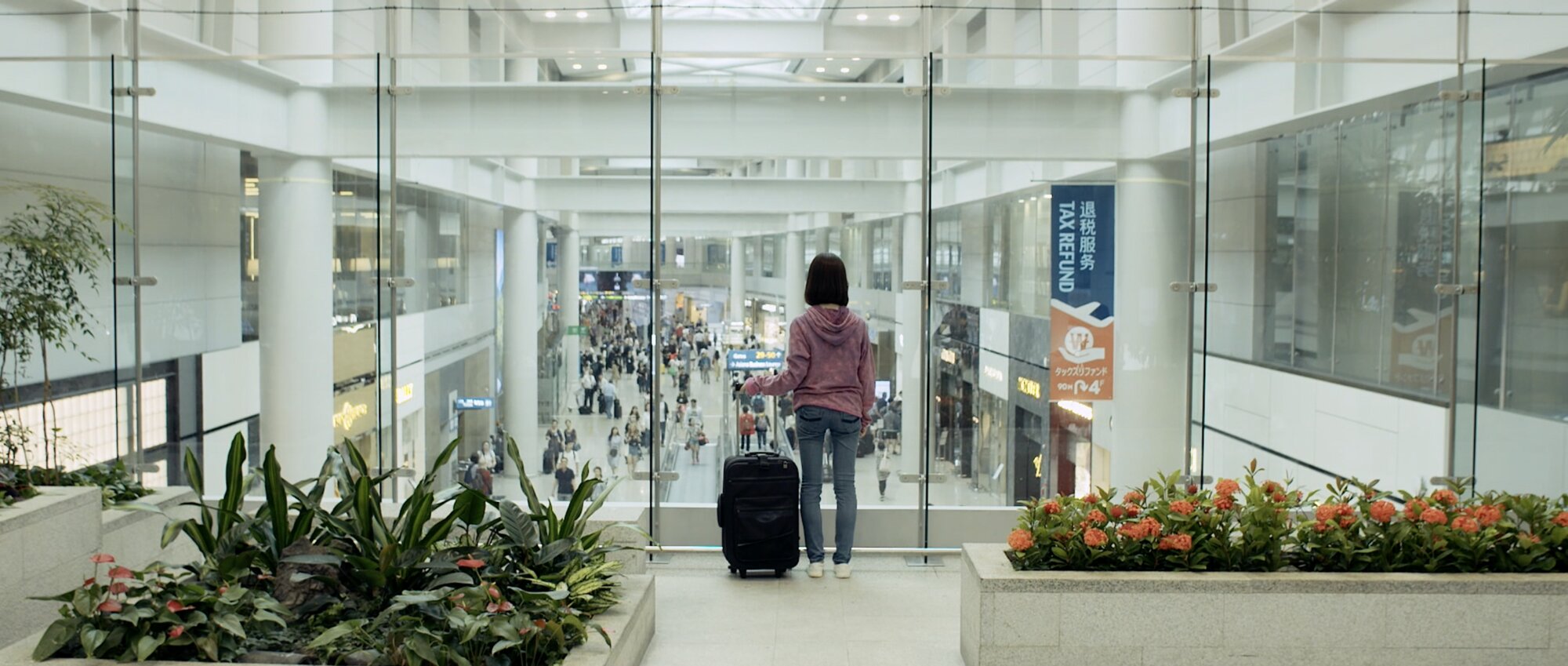 Hye Sun standing with suitcase at Incheon Airport for Hana Korea
