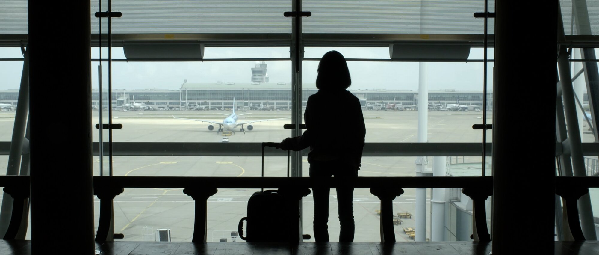 Hye Sun in silhouette watching planes at Incheon Airport for Hana Korea