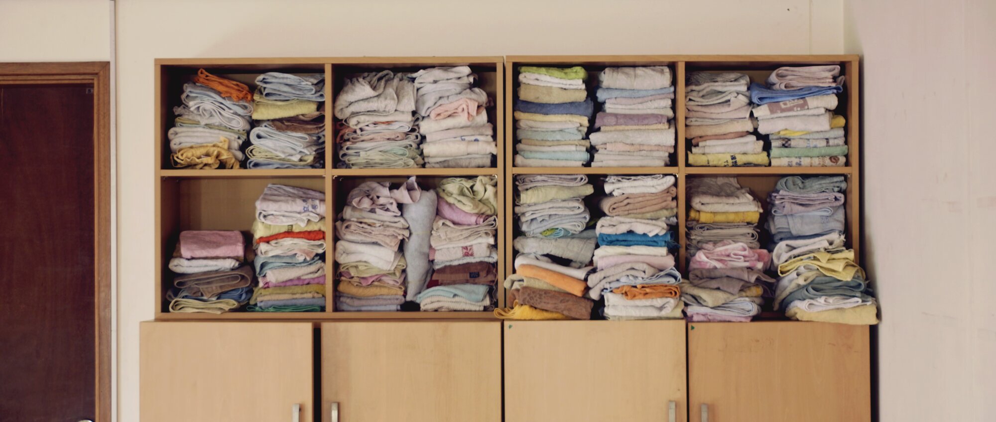 Stacked towels inside Hanawon resettlement center for Hana Korea
