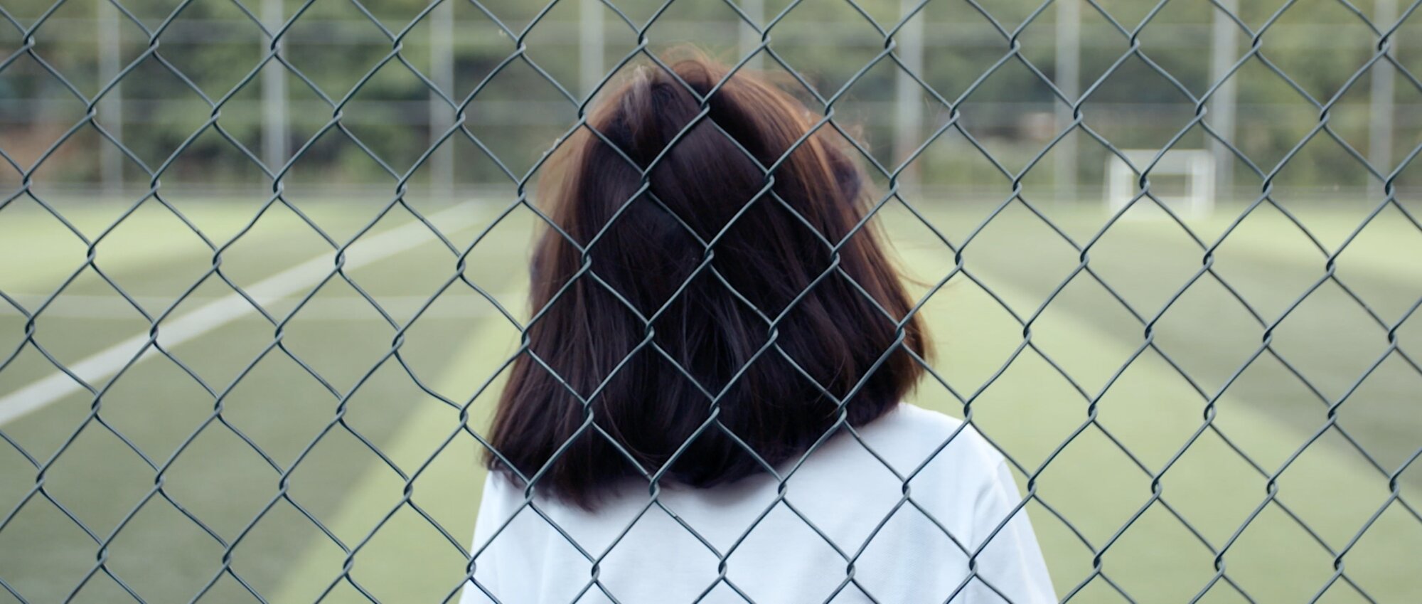 Hye Sun behind chain-link fence at Hanawon for Hana Korea