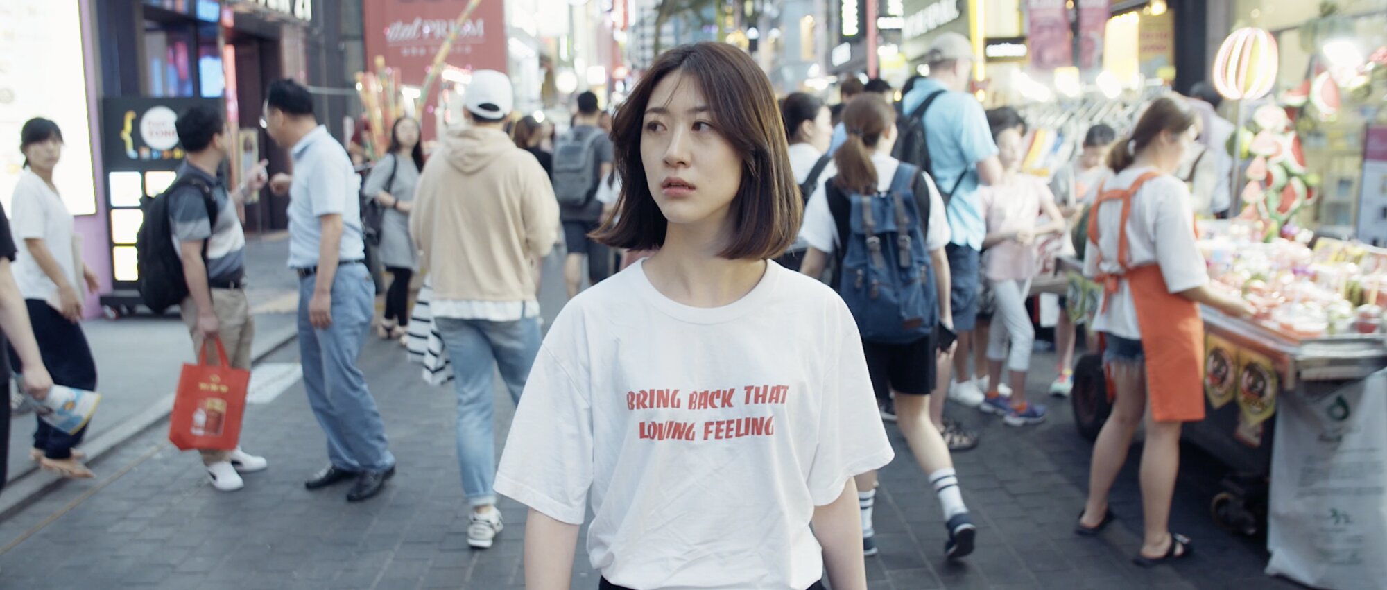 Hye Sun walking through Myeongdong in Seoul for Hana Korea