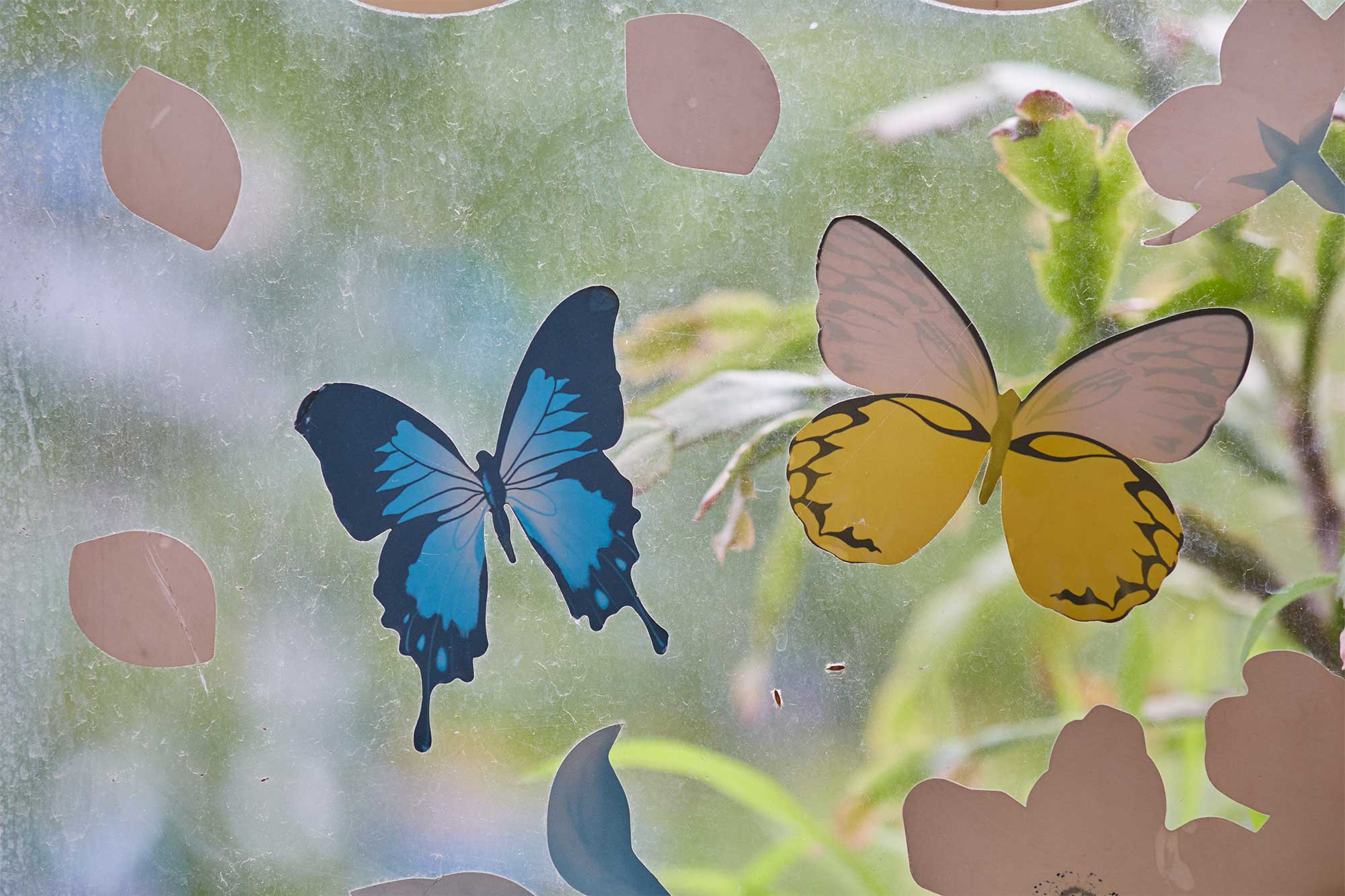 Two butterfly stickers on a glass window of a traditional Korean coffee shop in Seoul, captured for AS IT IS magazine’s issue on the beauty of aging.