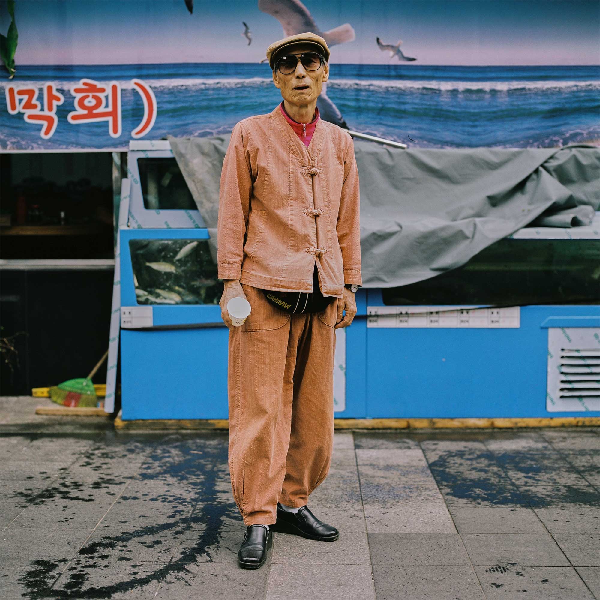 JANG-GIN PARK (AGE 73). FORMER HAND-CRAFTSMAN. ENJOYS WATCHING PEOPLE.